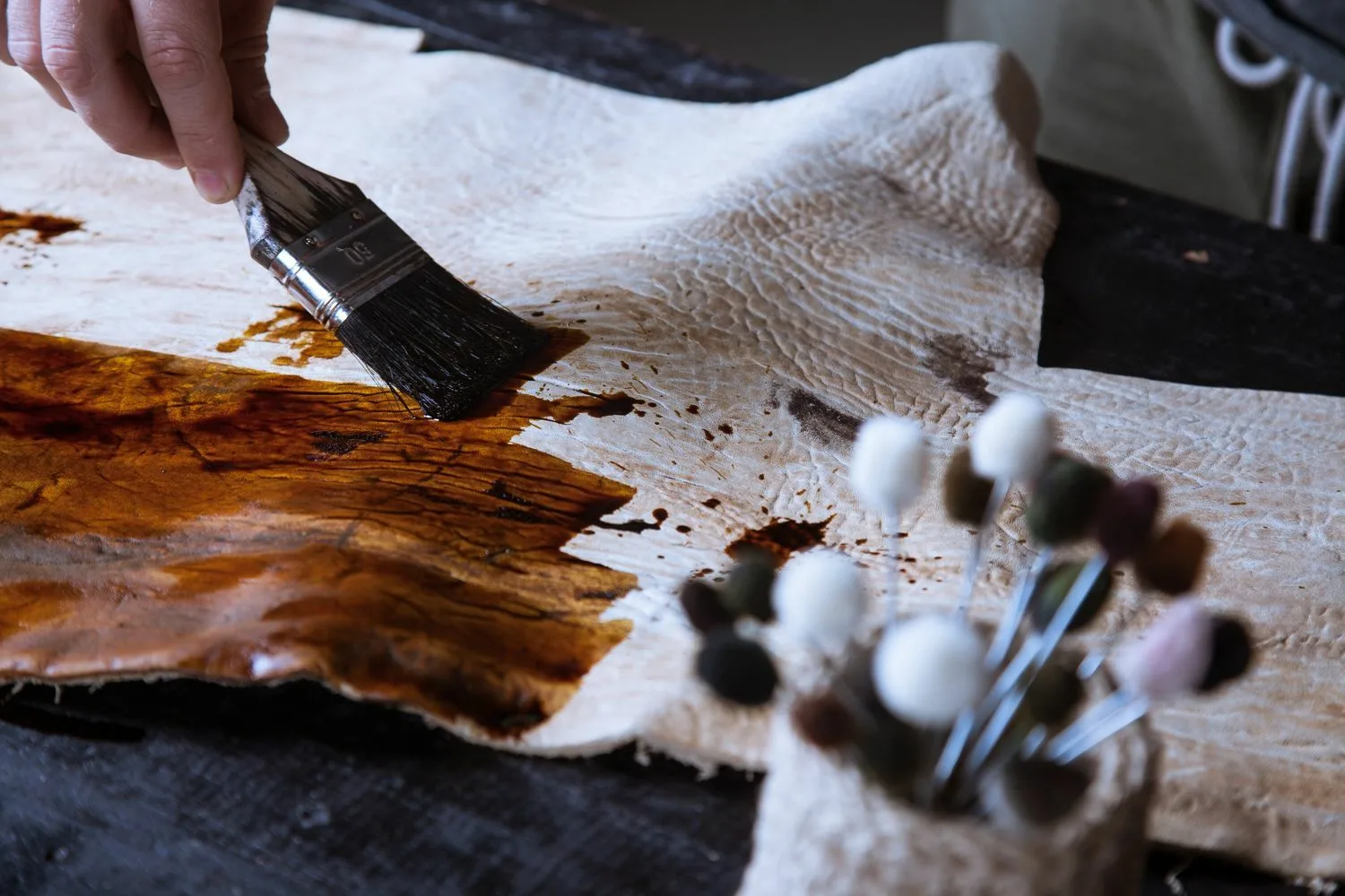 Для начала необходимо оттереть краску с помощью тряпки. Это позволит убрать остатки вещества, которое не успело впитаться. Нужно обильно нанести масло на чистую тряпку и протирать поверхность. В течение 3 минут оно должно растворить состав и очистить кожу.
